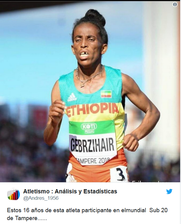 16 летняя Гирмавит Гебржихаир на дистанции, фото: Twitter