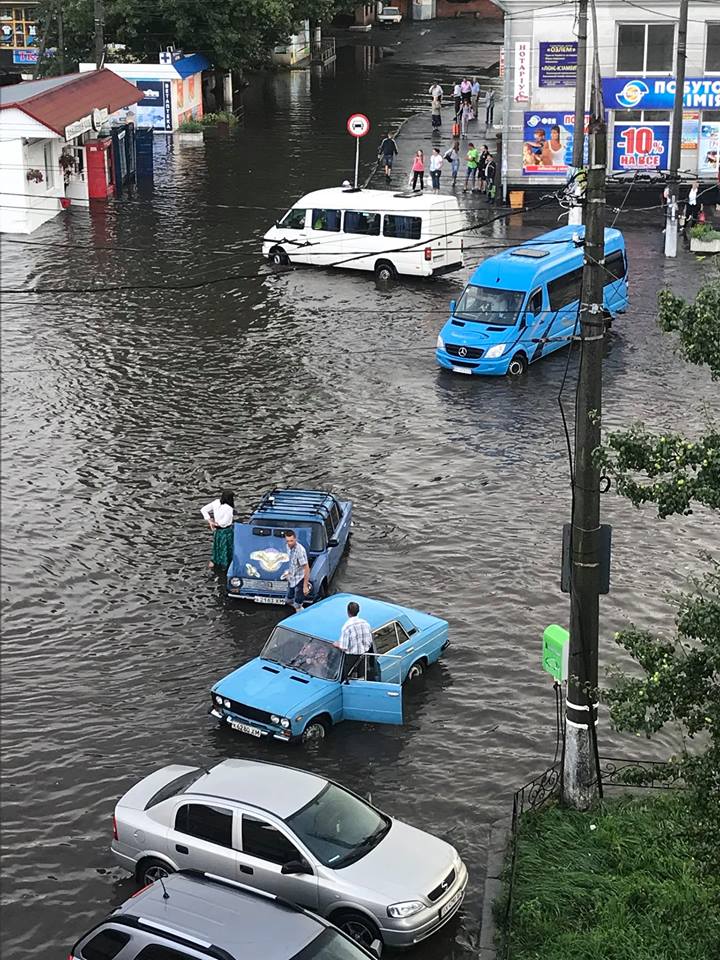 Кое-где вода доходила людям по колено. И смывала даже номерные знаки на машинах. Пользователи социальных сетей в шутку называли свой город "Хмельнеция".