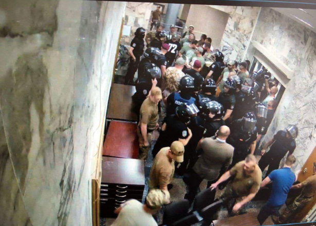 Как уточнил "Украинской правде" источник в НАБУ, утром в здании был "так называемый АТОшник Ваня Грабарь с группой так называемых "протестующих". Они ворвались в холл через дверь общественной приемной, которые обычно закрыты. Но в кабинеты они не дошли, поскольку между холлом и коридором с кабинетами есть металлическая ролета и ее опустили.