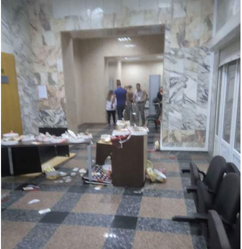 Утром 17 июля группа неизвестных проникла в холл здания НАБУ. Молодые люди разбросали торты Roshen и сломали мебель.