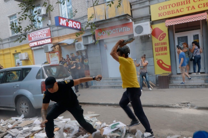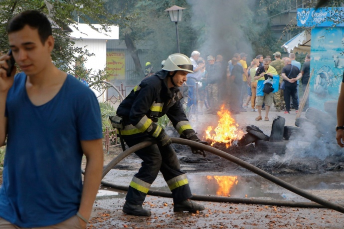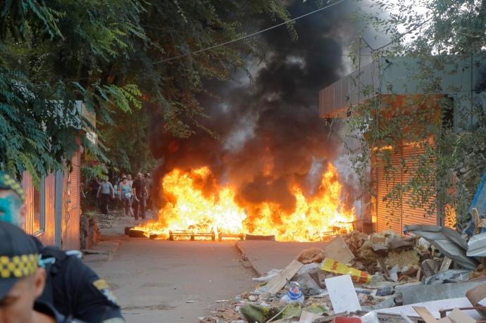 В частности, неизвестные бросали камни, использовали биты и жгли шины.