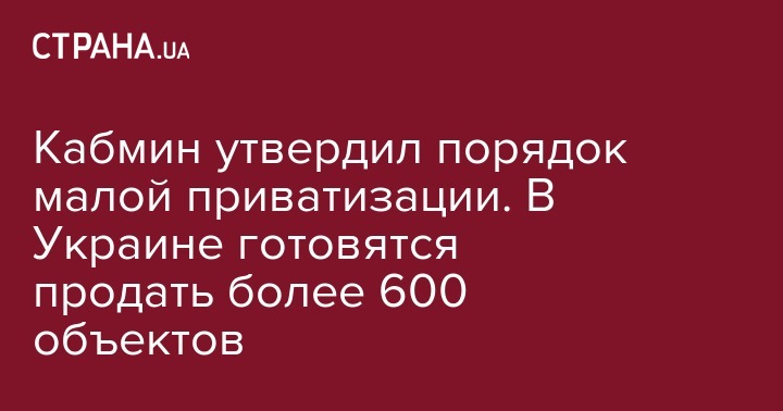 Как сообщала "Страна", "малая" приватизация предусматривает продажу объектов государственной или коммунальной собственности, стоимость которых не превышает 250 млн грн. ФГИ определил к "малой" приватизации более 600 объектов.