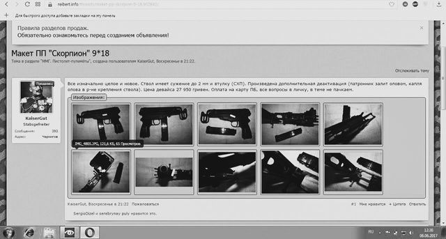После того, как человек вернулся из СИЗО домой, он увидел, что изъятое во время обыска раритетное оружие продается в интернете. В частности, редкий револьвер Гассера. Алексей узнал его по индивидуальному номеру, а также - по барабану, который ему делал на заказ оружейник из Бердянска.