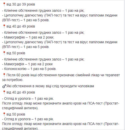 Супрун приводит информацию о частоте обследований для мужчин и женщин, подтвержденную Национальным институтом рака.