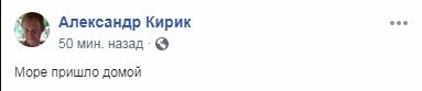 "Море пришло домой", - шутит в Facebook Александр Кирик в комментарии к очередному апокалиптическому видео.