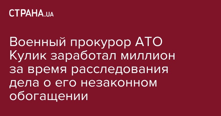 Военный прокурор АТО Кулик заработал миллион за время расследования дела о его незаконном обогащении