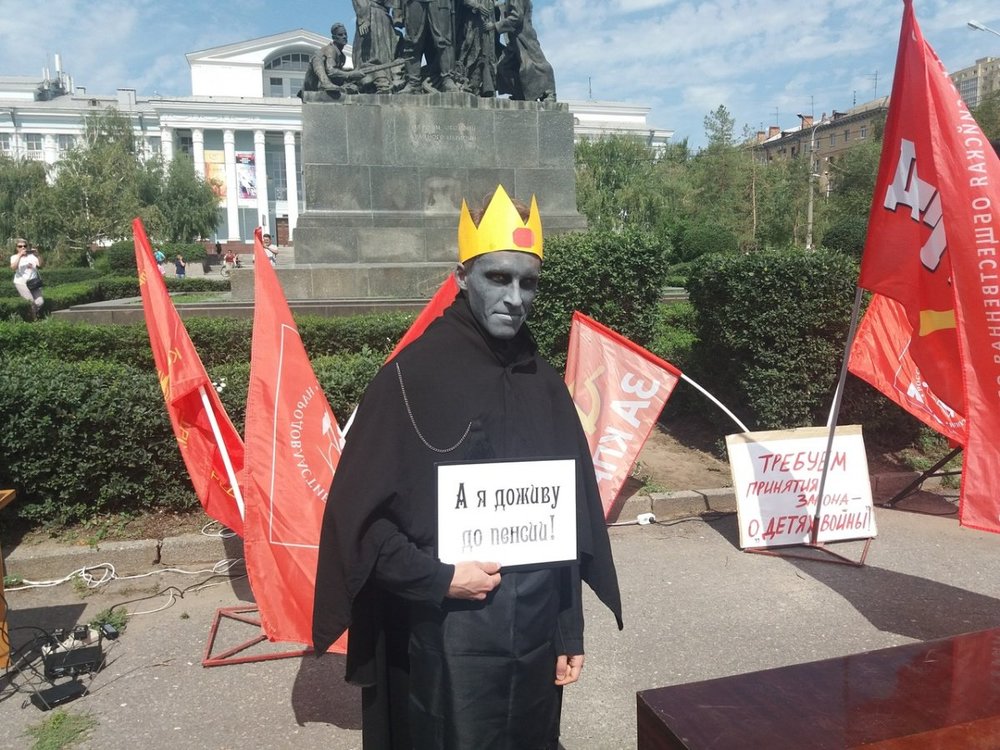 Волгоградские коммунисты вывели на митинг против пенсионной реформы Князя Тьмы.