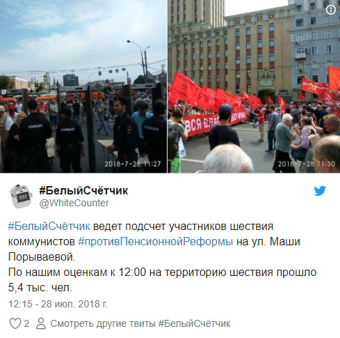 В Санкт-Петербурге на площади Ленина собралось около трех тысяч человек. В Москве по оценкам "Белого Счетчика" в Twitter к 12:00 на территорию шествия прошло 5,4 тысяч человек.