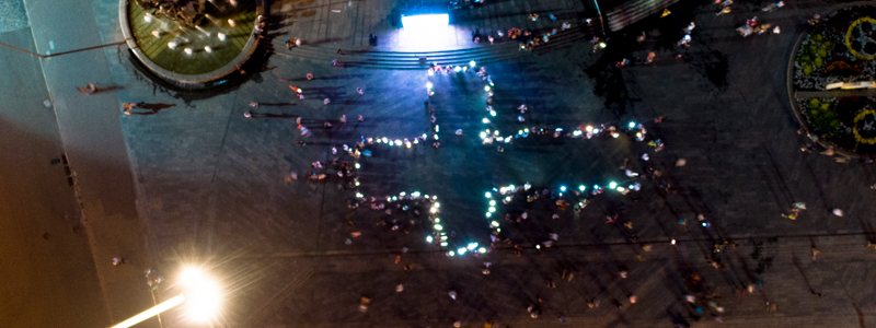Люди подняли кверху свои смартфоны с зажженными вспышками и экранами. На несколько минут Майдан независимости засиял сотней ярких лампочек.