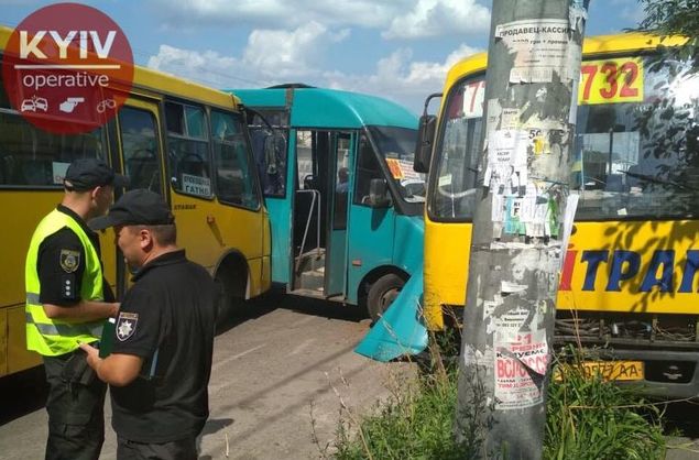 Столкновение трех маршрутных автобусов произошло в г.Вишневое (Киевская обл.), пострадали двое водителей и двое пассажиров, их госпитализировали в райбольницу, сообщил во вторник отдел коммуникации полиции в Киевской области. Об этом сообщает Киев Оперативный