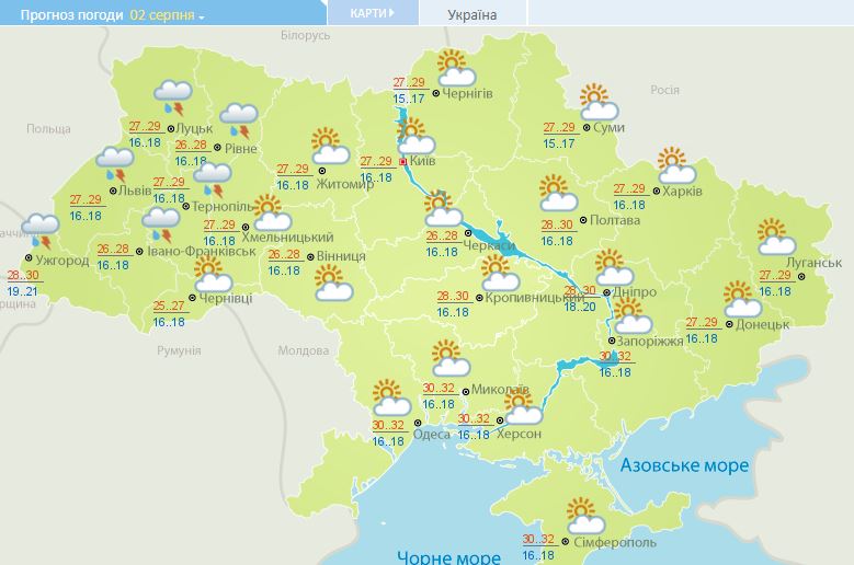 В восточных областях синоптики прогнозируют жаркую погоду, как и во всех остальных частях Украины. Термометр ночью покажет +16…+18, а днем +27…+29.
