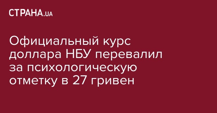 По данным НБУ, справочное значение курса гривни к доллару в этот день на 12:00 снизилось до 27,0123 грн/$1 с 26,9576 грн/$1 днем ранее.