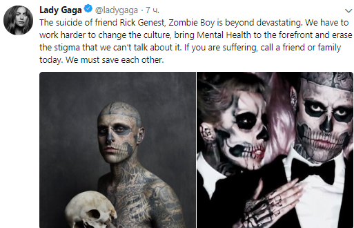 Леди Гага отреагировала на смерть своего друга, заявив, что его самоубийство опустошает. Она написала, что нужно покончить с предрассудками и поставить психическое здоровье на первый план.