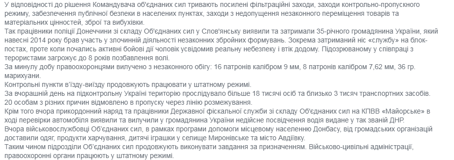 Об этом сообщили в пресс-центре штаба операции объединенных сил (ООС).