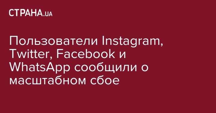 Также сбой произошел в соцсетях и приложениях для общения Instagram, Twitter, WhatsАpp, со ссылкой на данные Downdetector сообщает УНН.
