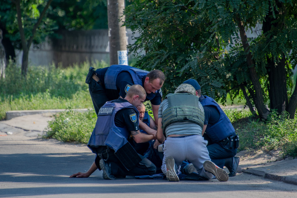 Оставшись один на один с опасным боеприпасом, мужчина стал звать на помощь и просил вызвать полицию. На вызов приехали несколько патрульных экипажей, рядом дежурили медики и бригада ГСЧС. Всем патрульным, которые находились в эпицентре событий, выдали дополнительные средства защиты. Ситуацию взял под контроль замначальника ГУНП в Днепропетровской области Владимир Богонис, который также находился на месте событий.