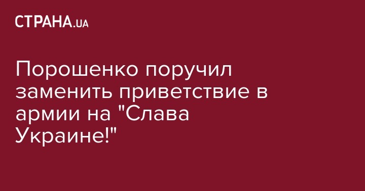 Петр Порошенко поручил до Дня независимости Украины разработать законопроект, который закрепит замену военного приветствие в ВСУ советского образца "Здравствуйте, товарищи!" и "Желаем здравия!" на "Слава Украине!" и "Героям слава!"