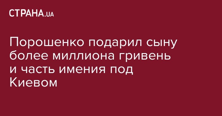 Порошенко подарил сыну более миллиона гривень и часть имения под Киевом