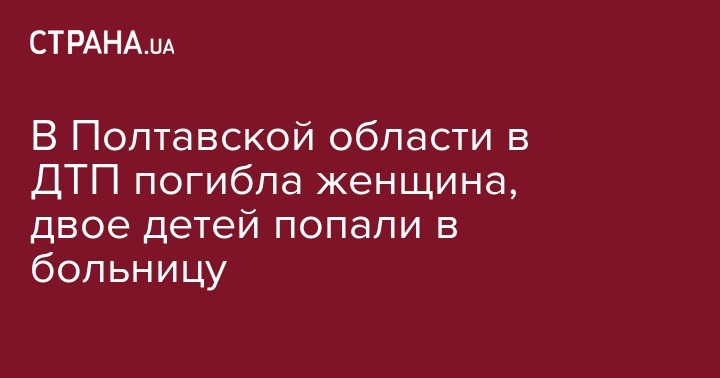 В Полтавской области на автодороге Киев-Харьков вблизи с.Александровка Пирятинского района в результате дорожно-транспортного происшествия с участием двух легковых автомобилей погибла женщина, еще двое детей получили травмы, сообщила пресс-служба Национальной полиции Полтавской области.
