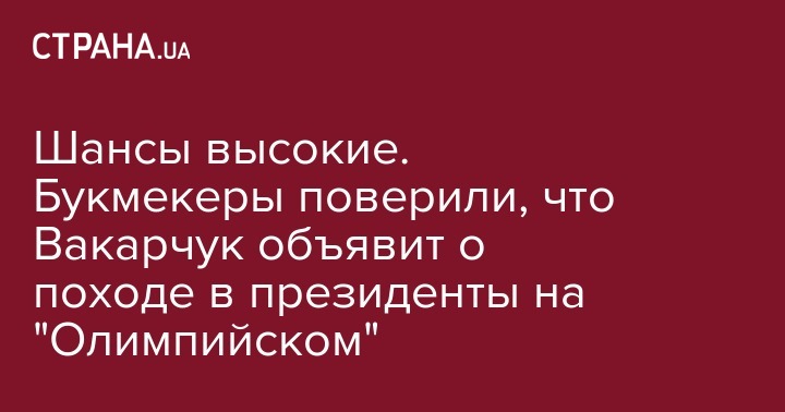 "Ориентируясь на слухи, (букмекер) организовал ставки на то, объявит ли Вакарчук о своем выдвижении в президенты на концерте 24 августа. Контора оценивает шансы на это 50 на 50. Коэффициент на то, что он это сделает - 1,87. Столько же и на обратный вариант", - сообщает издание.