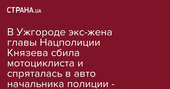 В Ужгороде бывшая супруга главы Национальной полиции Сергея Князева за рулем внедорожника Volkswagen Touareg сбила мотоциклиста, а потом пряталась в машине главы полиции области. Об этом сообщает "Закарпатье"