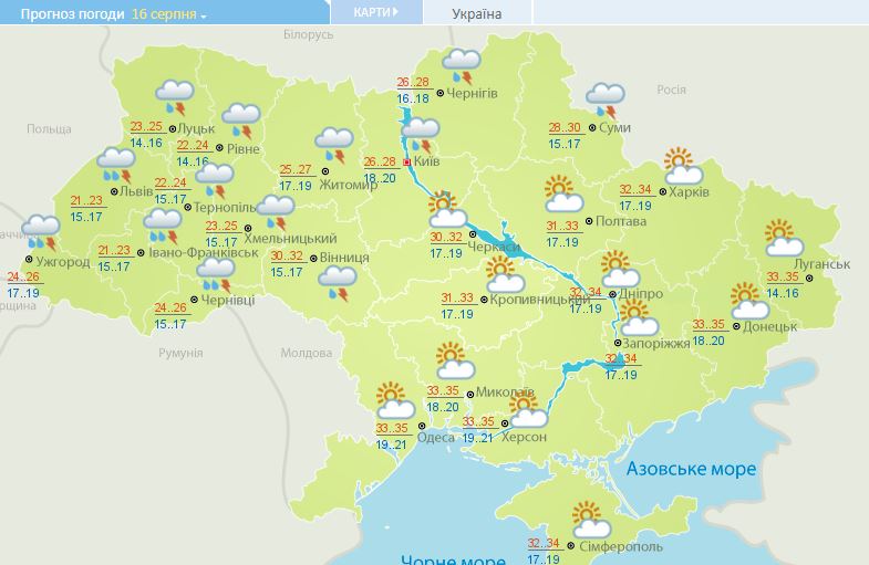 Сегодня, 16 августа, в западных, северных и Винницкой областях кратковременные дожди, местами грозы, на остальной территории сухо, дневная температура дойдет до +35. Об этом сообщила пресс-служба Укргидромецентра.