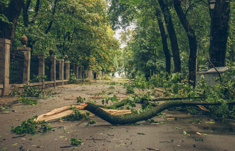 В Мариинском парке ветер повалил деревья и фонари. Аллеи усыпали ветки.