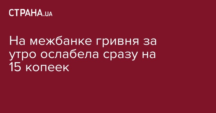 На межбанке гривня за утро ослабела сразу на 15 копеек