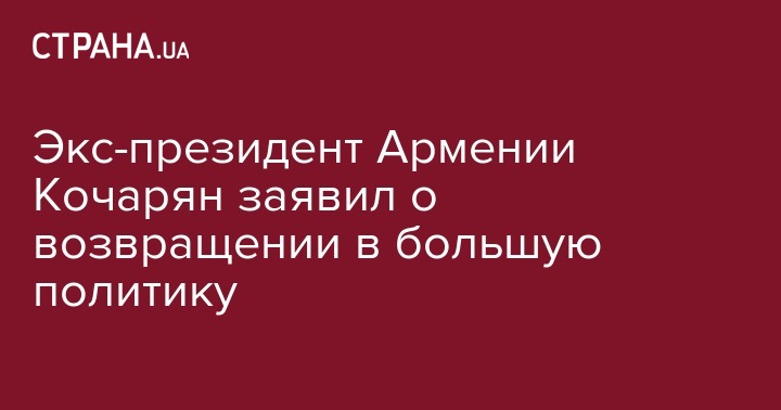 Экс-президент Армении Роберт Кочарян объявил, что возвращается в политику.