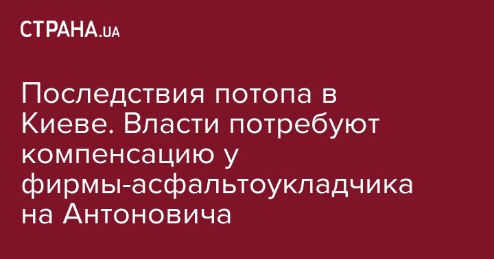 Последствия потопа в Киеве. Власти потребуют компенсацию у фирмы-асфальтоукладчика на Антоновича