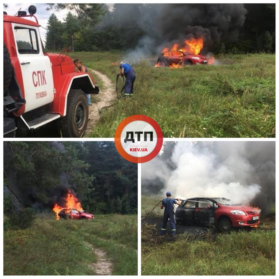 Под Киевом автоледи въехала на костер и сожгла машину дотла