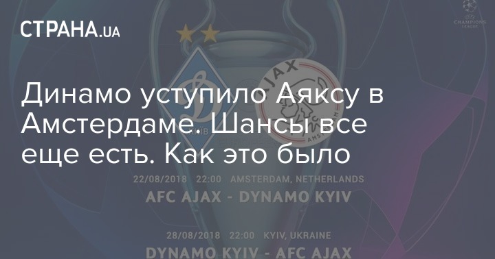 В среду, 22 августа на стадионе "Йохан Кройф Арена" в Амстердаме местный "Аякс" принял киевское "Динамо". Первый матч раунда плей-офф Лиги чемпионов завершился победой голландцев 3:1. Ответная игра состоится в Киеве уже 28 августа.