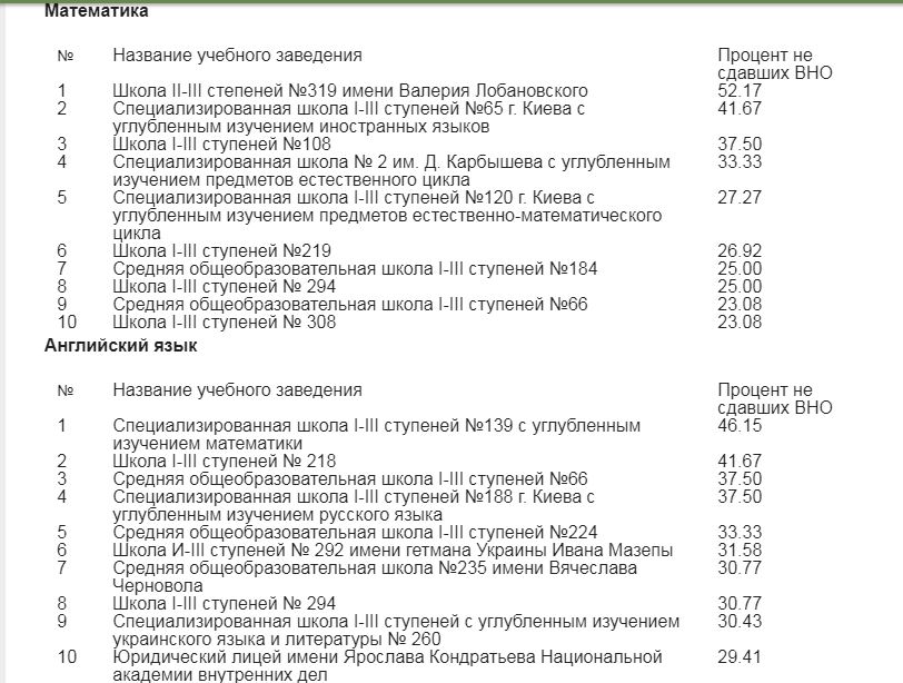 Уже появился список школ Киева, выпускники которых набрали меньше всего баллов по результатам ВНО-2018. Для оценки учитывалась статистика ВНО по предметам, которые сдавали чаще всего: украинский язык и литература, математика, история Украины, английский и география.