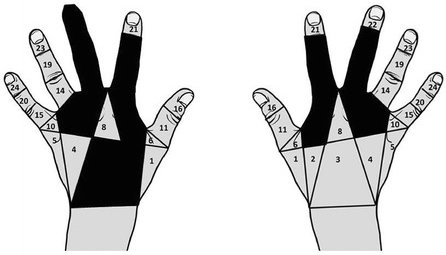Женщины в целом реже получают шрамы на руках, чем мужчины. Хотя, строго говоря, одно исследование, в котором участвовало сравнительно мало людей, не позволяет утверждать это наверняка. Но если ориентироваться на выводы этой работы, у женщин шрамы (в основном мелкие) чаще обнаруживались на правой руке, причем большинство - на указательном и среднем пальцах, а также в районе их оснований.