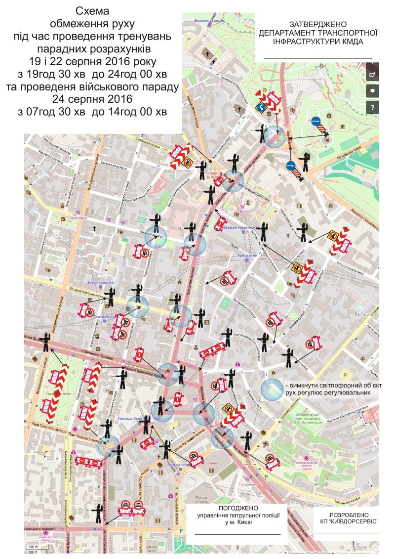 В 16:30 на Крещатике состоится Гала-концерт. Из-за парада в столице перекроют движение. Городские власти обнародовали схему перекрытия улиц.