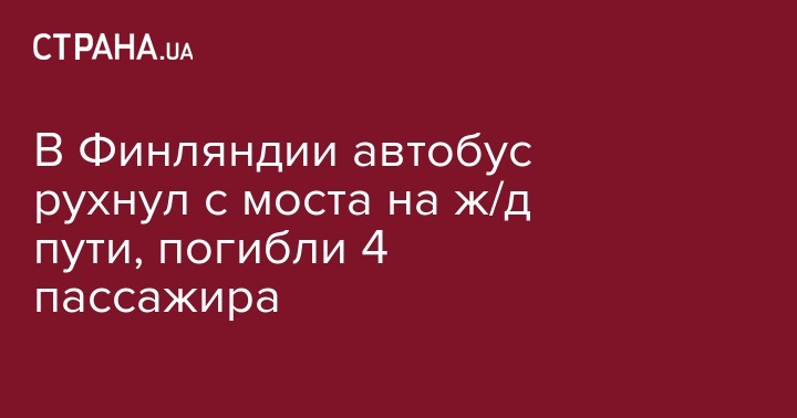 В финском в городе Куопио случилась серьезная авария, в результате которой автобус упал с моста на железную дорогу. В результате ДТП погибли четыре человека, более 20 пострадали. Об этом сообщает Yle со ссылкой на заявление полиции.