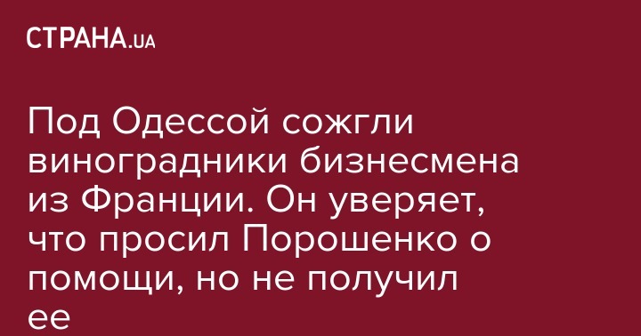Под Одессой сожгли виноградники бизнесмена из Франции. Он уверяет, что просил Порошенко о помощи, но не получил ее