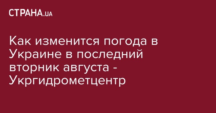 Во вторник, 28 августа, погоду в Украине будет определять сухой и жаркий воздух. Лишь в западной части страны - влажная и прохладная воздушная масса, сообщает Укргидрометцентр.