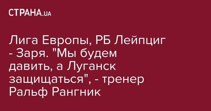 Лига Европы, РБ Лейпциг - Заря. "Мы будем давить, а Луганск защищаться", - тренер Ральф Рангник