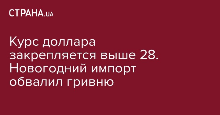 Курс доллара закрепляется выше 28. Новогодний импорт обвалил гривню