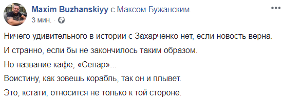 "Ничего удивительного в истории с Захарченко нет, если новость верна.