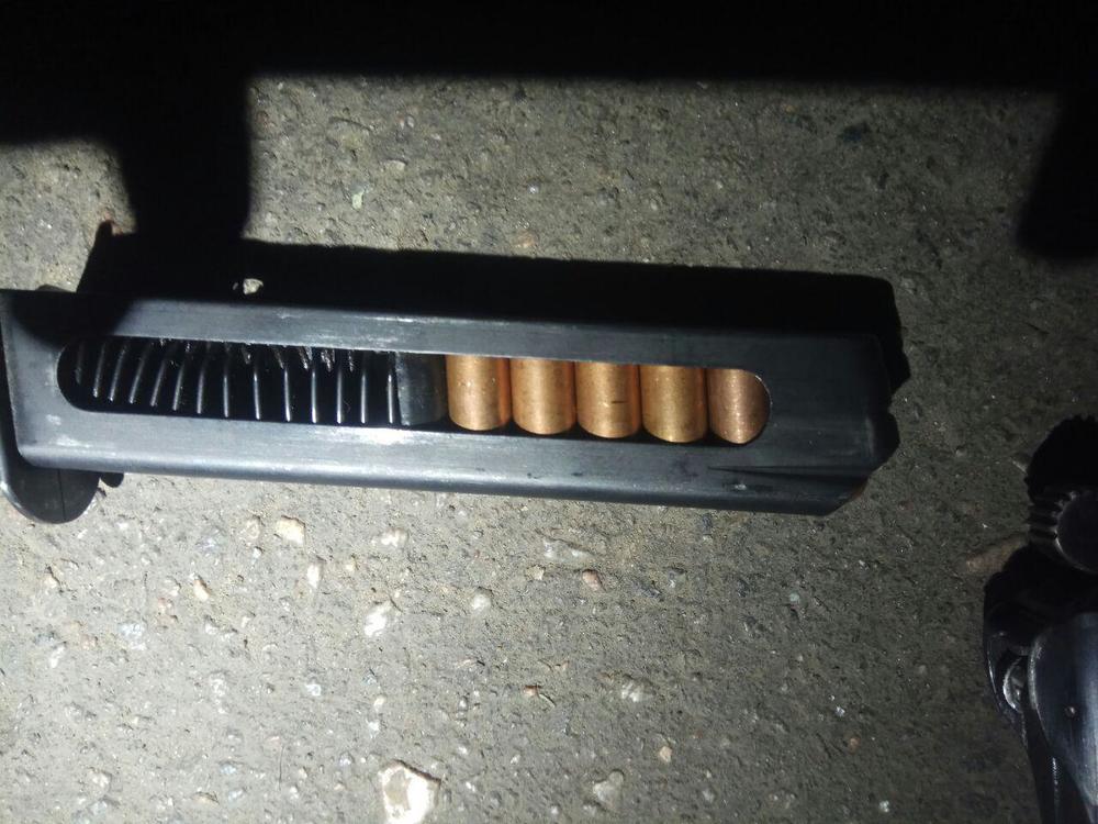 Предварительно, у мужчины был при себе пистолет системы Стечкина с глушителем, с 12 боевыми патронами. Но никаких документов на оружие у него при себе не оказалось. Мужчину доставили в отделение полиции, проводится следствие.
