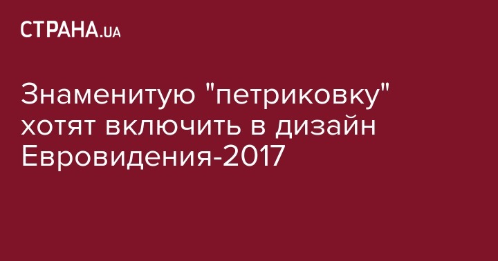 Известную на весь мир петриковскую роспись предлагается включить в дизайн Евровидения-2017. Такую идею озвучил студент Львовской академии искусств Игорь Лесной на странице сообщества в социальной сети Facebook.