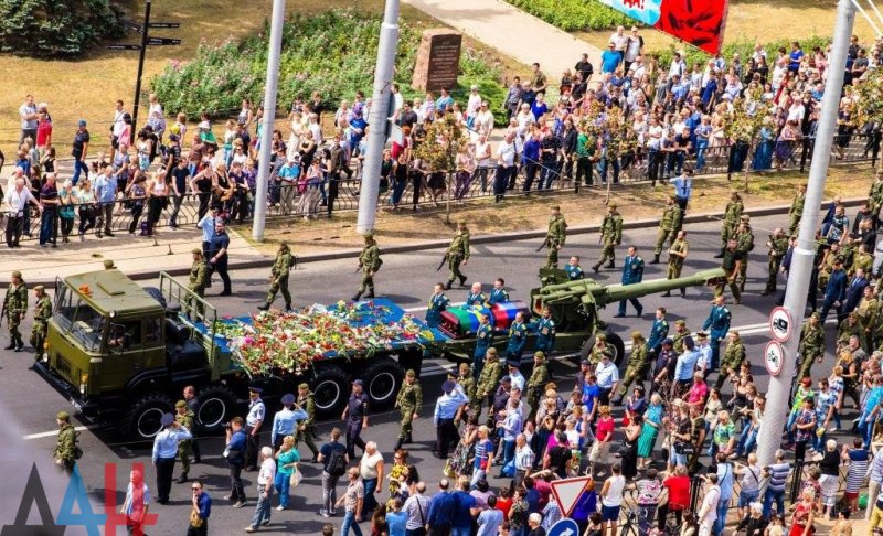 Сегодня, 2 сентября, в Донецке прошло траурное шествие на похоронах убитого "главы" так называемой "ДНР" Александра Захарченко. Его тело везли в закрытом гробу на лафете артиллерийского орудия, которое буксировал грузовой автомобиль.