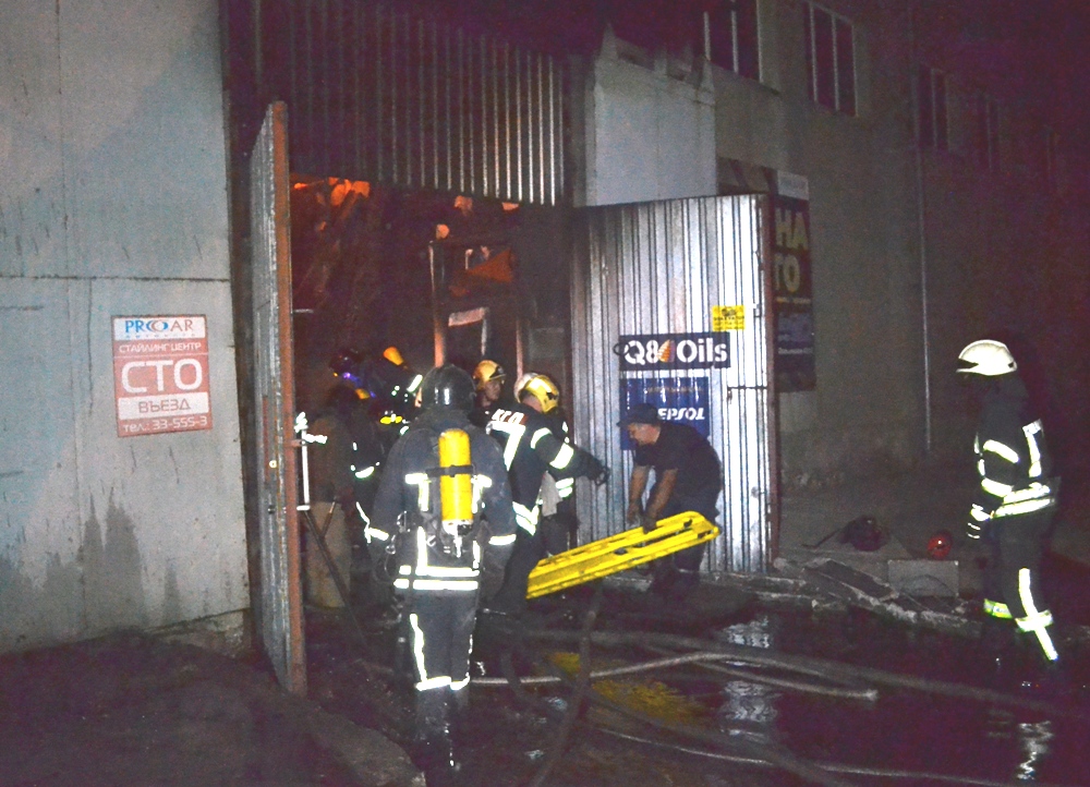 Сообщение о возгорании в складском помещении станции технического обслуживания поступило к спасателям 3 сентября в 20:57. Пожарные подразделения установили, что горят смазочные материалы и неизвестные вещества на складе на первом и втором этажах. При этом постоянно возникали взрывы неизвестного происхождения. В результате интенсивного горения в 21:19 произошло обрушение крыши и пожар распространился на площадь 150 кв. метров.