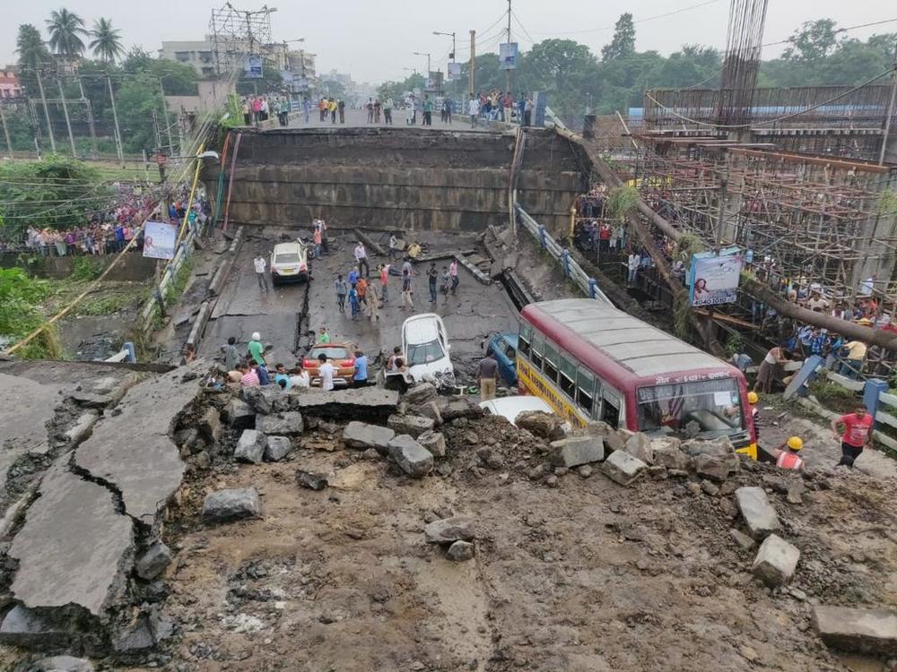 "Упали легковые машины и автобус". Появились фото рухнувшего моста в Калькутте