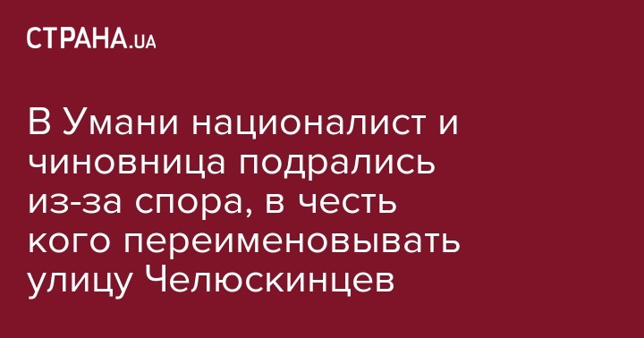 В городе Умань Черкасской области из-за планов переименования улиц вспыхнул конфликт между главой секретариата горсовета Людмилой Кирилюк и местным активистом Владимиром Гончаруком. Об этом во вторник, 4 сентября, передает Радио НВ.