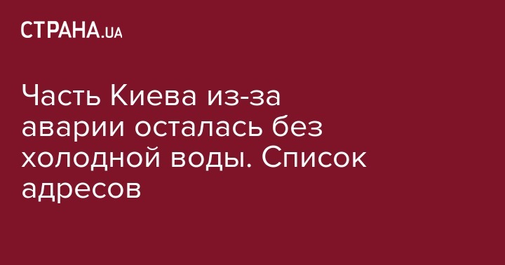 Часть Киева из-за аварии осталась без холодной воды. Список адресов