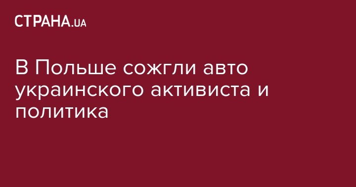 В субботу, 8 сентября, в Польше сожгли авто активиста украинской лемковской общины Адама Вевюрки. Об этом сообщает портал польских украинцев Пространство со ссылкой на собственные источники.