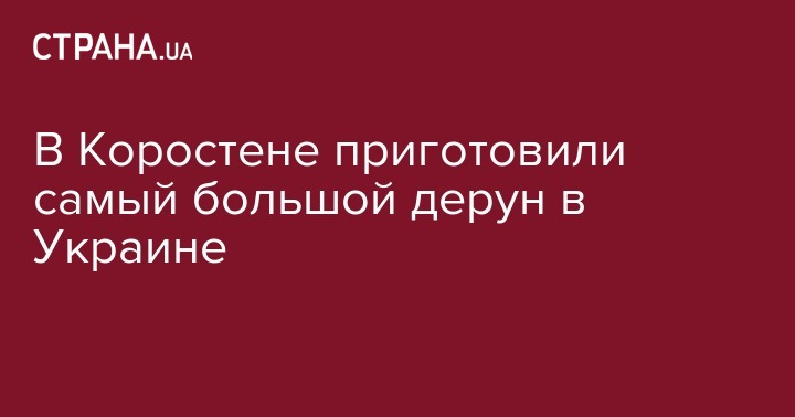 Приготовление гигантского угощения приурочили к десятому международному фестивалю дерунов, который проводят в городе Коростень. Достижение зафиксировали представители Книги рекордов Украины. Дерун-рекордсмен украсили цветами из лука, моркови, помидоров, а также ветками калины.